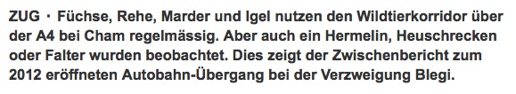 4. Das mag ich so an Amadé’s Blog: man lernt nie aus! Und darum achte ich mich morgen mal, wo die Wildbrücke eigentlich steht. Aber Augen auf die Strasse, sonst erschrecke ich die Falter und alles ist für die Füchse, wenn ich sehe wie die Rehe da gehen.